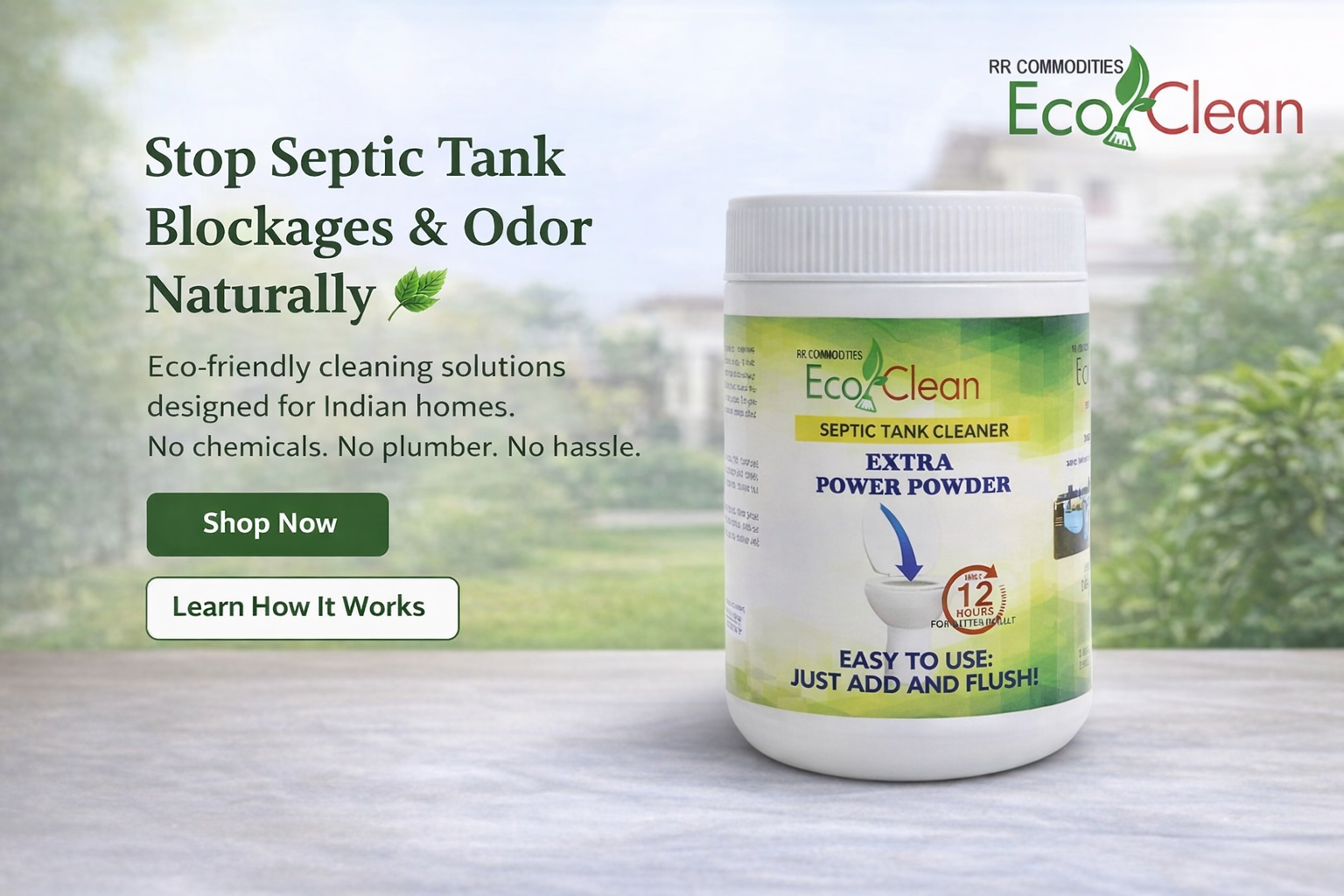 Ecoclean Septic Tank Cleaner Powder 300gm - 12 Hour Fix - 1 Year Maintenance for 10 member family